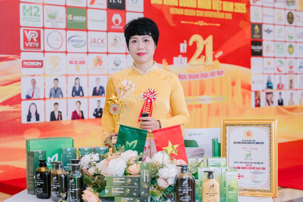 Khoảnh khắc Quản lý kinh doanh Nguyễn Quỳnh bước lên sân khấu để đại diện Mộc Việt nhận giải thưởng TOP 10 Sao Vàng Thương Hiệu Việt Nam 2025 đã ghi dấu một hình ảnh thật đẹp. Không chỉ bởi vinh dự lớn lao của thương hiệu, mà còn bởi câu chuyện đầy cảm hứng ẩn sau bước chân tự tin của người phụ nữ ấy – câu chuyện về hành trình tìm thấy chính mình thông qua giá trị của thảo dược Việt.